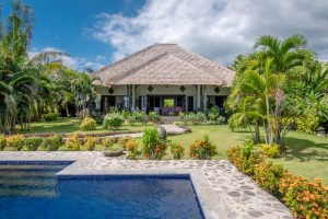 The villa that sleeps up to 8, has four bedrooms with aircon, ensuite bathrooms. The living area has a 9 metres high thatched Alang-Alang ceiling and is decorated in a modern minimalist style, using traditional Balinese details. Ayu is a staffed villa that provides private chef, guest assistant, gardener, security and beach-cleaner. Driver is available during your stay. The private 50m2 swimmingpool, the 2 gazebos and the ‘tempat meditasi’ are in a large private tropical garden that ends on the beach. On the spot and in the surroundings you will find great wellness opportunities and many sports, culture and nature excursions.